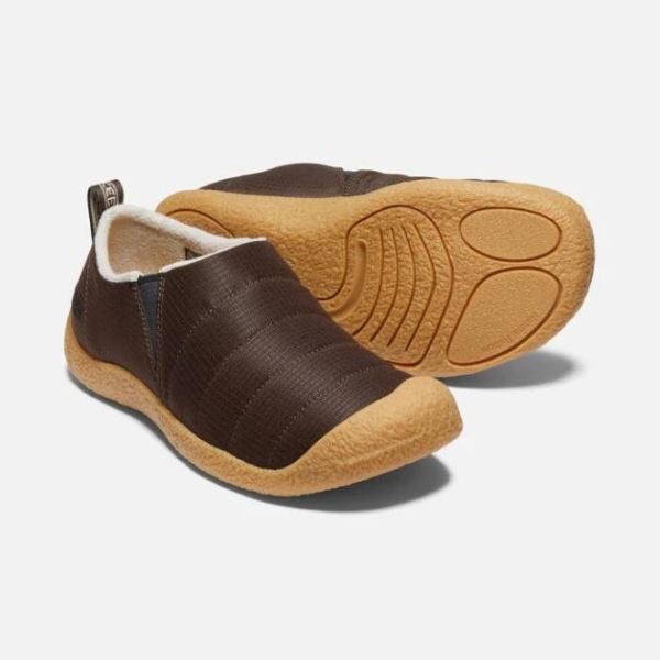 Quilted nylon is lined with plush microfleece for warmth without bulk. A memory foam footbed forms to your foot while cushioning every step, and the rubber outsole stands up to outdoor wear.