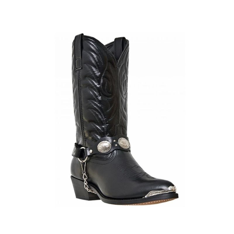 Add a touch of style to any outfit with the Tallahassee western boots by Laredo. These flashy boots are made with a leather vamp and a 12" leather-like shaft. They feature Laredo's Comfort Cushion insole that provides all-day comfort and cushioning to the feet. The moisture wicking cover keeps feet cool and dry. The sueded outsole is a rubber outsole that has the profile of leather yet it has greater abrasion resistance for longer wear. A concho harness offers a step up from plain black. It will go great with your comfortable jeans or adds a great touch to your slacks.