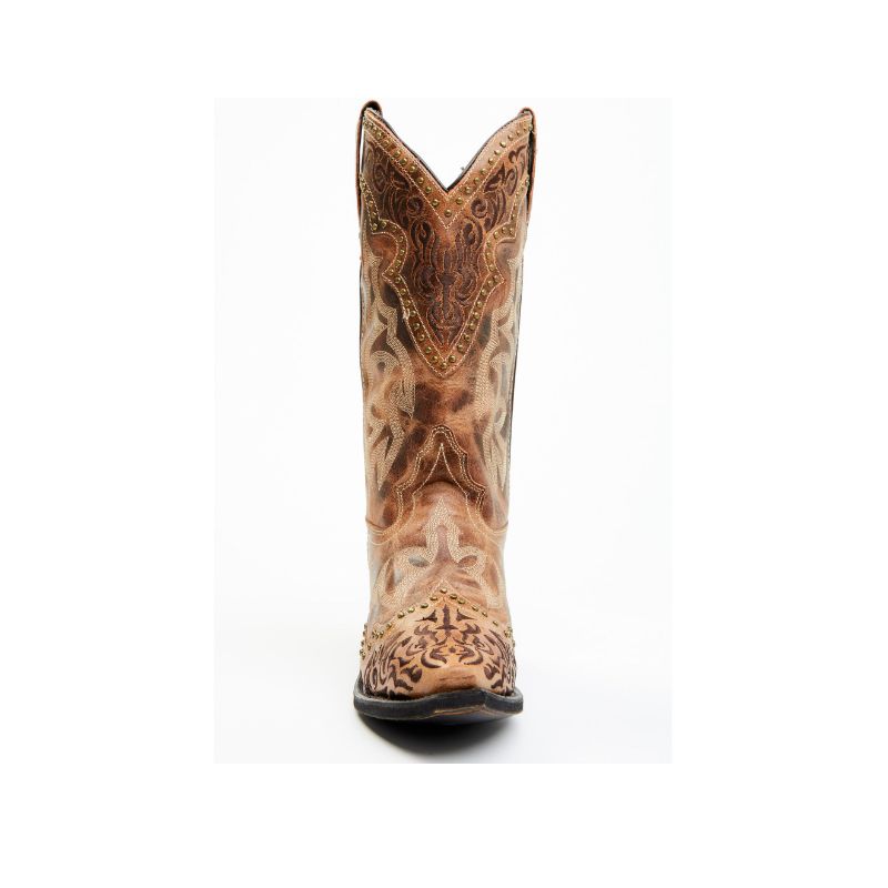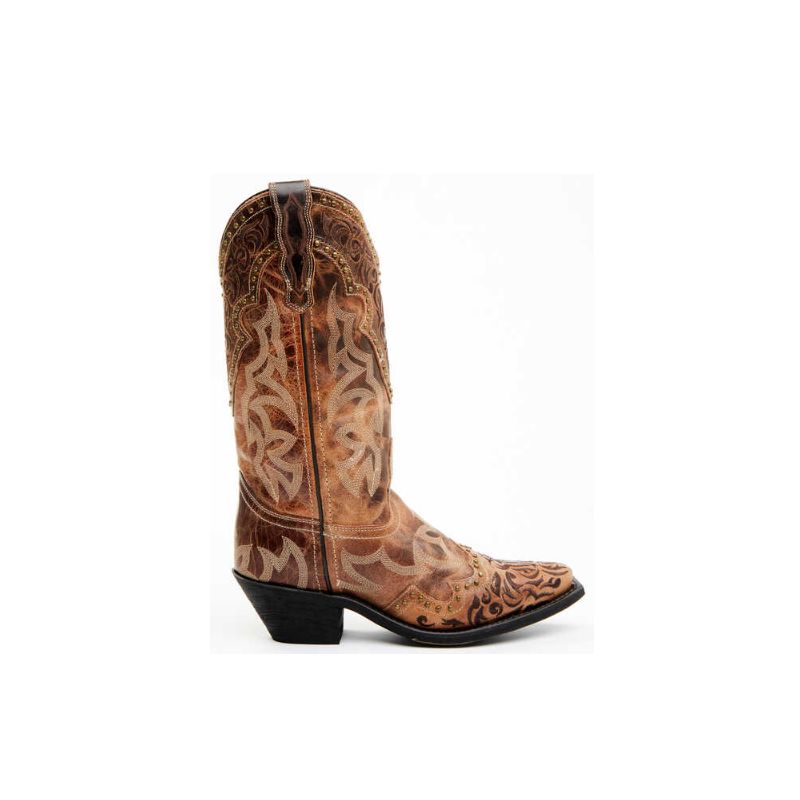 - LAREDO WOMEN'S LUCRETIA STUDDED SNAKE INLAY WESTERN BOOTS - SNIP TOE-BROWN | NEW ARRIVALS