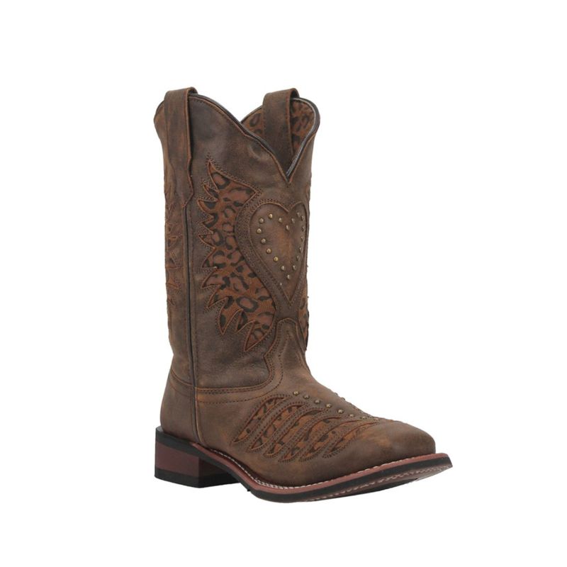 - LAREDO WOMEN'S STELLA LEOPARD PRINT INLAY STUDDED WESTERN BOOTS - SNIP TOE-BROWN | NEW ARRIVALS
