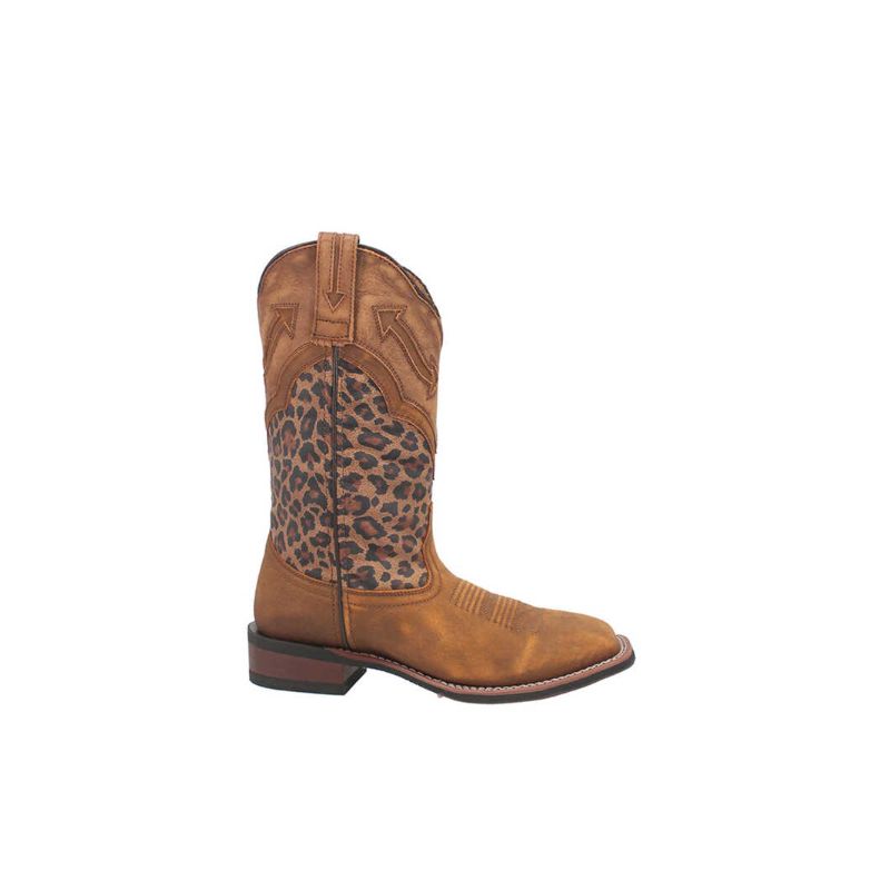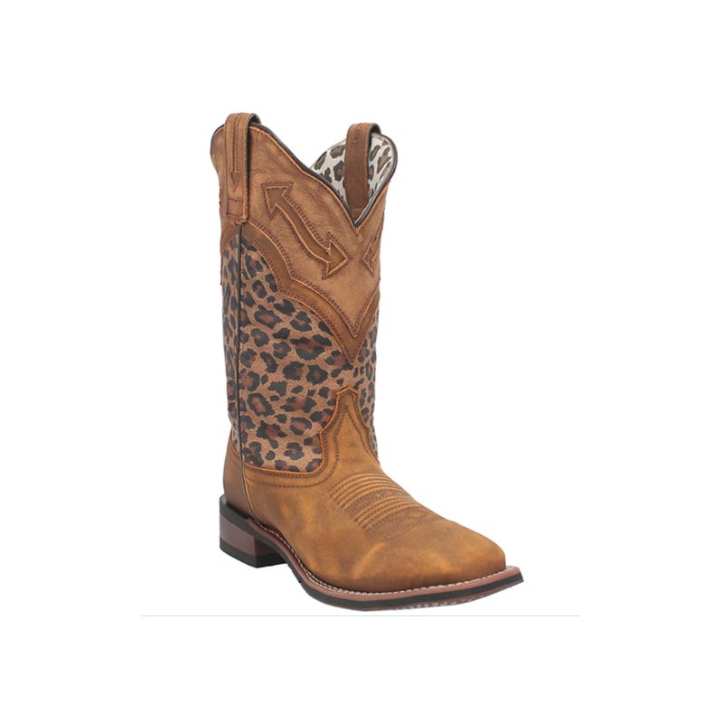 - LAREDO WOMEN'S STELLA LEOPARD PRINT INLAY STUDDED WESTERN PERFORMANCE BOOTS - SQUARE TOE-BROWN | NEW ARRIVALS