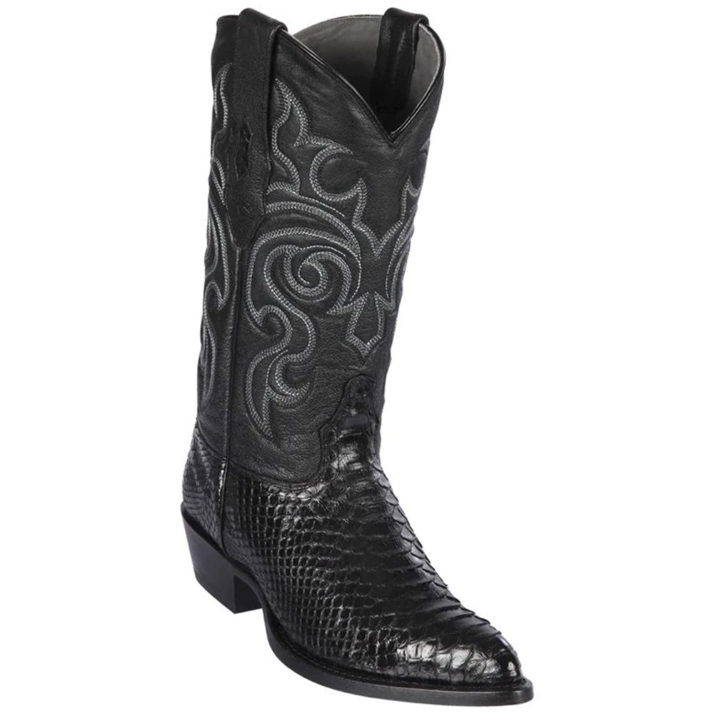 These handcrafted cowboy boots feature genuine Python snakeskin, giving them a unique and luxurious appeal. With their sleek black color, these boots will elevate any outfit while providing long-lasting wear.