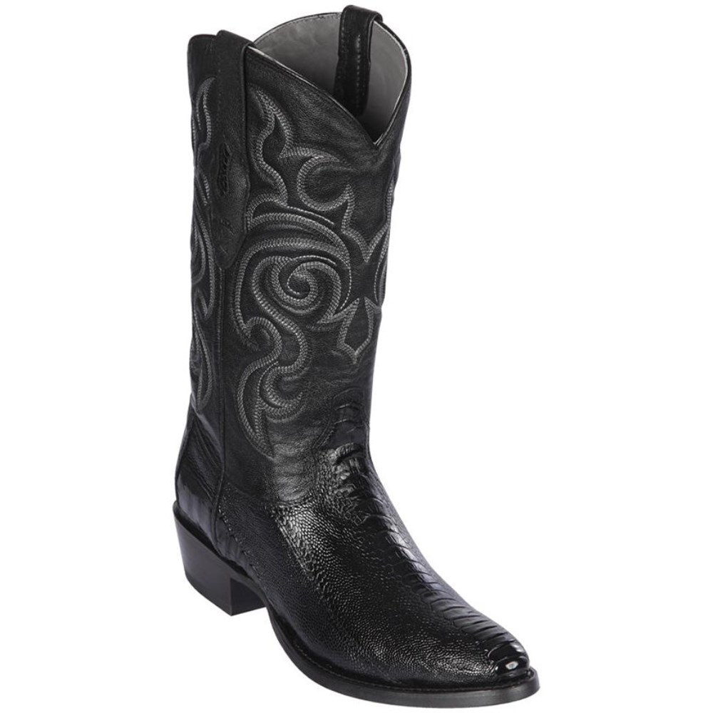 - Los Altos Men's Ostrich Leg Cowboy Boots R-Toe | Black