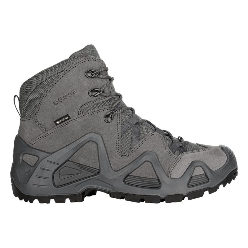 A rugged, multifunction duty boot for service personnel or for days on the range. Built on our injected DuraPU midsole and PU MONOWRAP frame construction for support and stability, and a LOWA Cross II outsole for reliable traction. Durably waterproof/breathable. Lacing Hardware: Fabric Loops & Closed Metal Hooks.