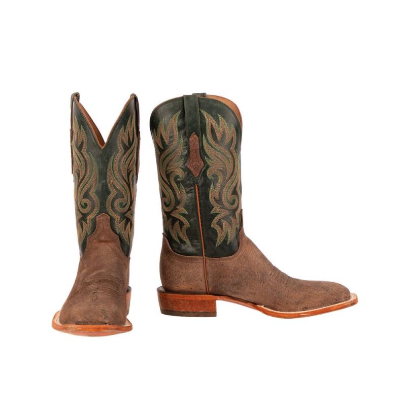 Branson is a horseman style handmade in Texas from wild boar and goat leather. With a 10-year stonewash finish, it starts out with a vintage look; oils used in the tanning process allow the wild boar leather to develop a patina that grows even more beautiful with age. Branson is a rugged look on and off the ranch.