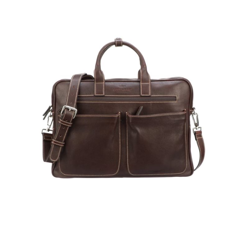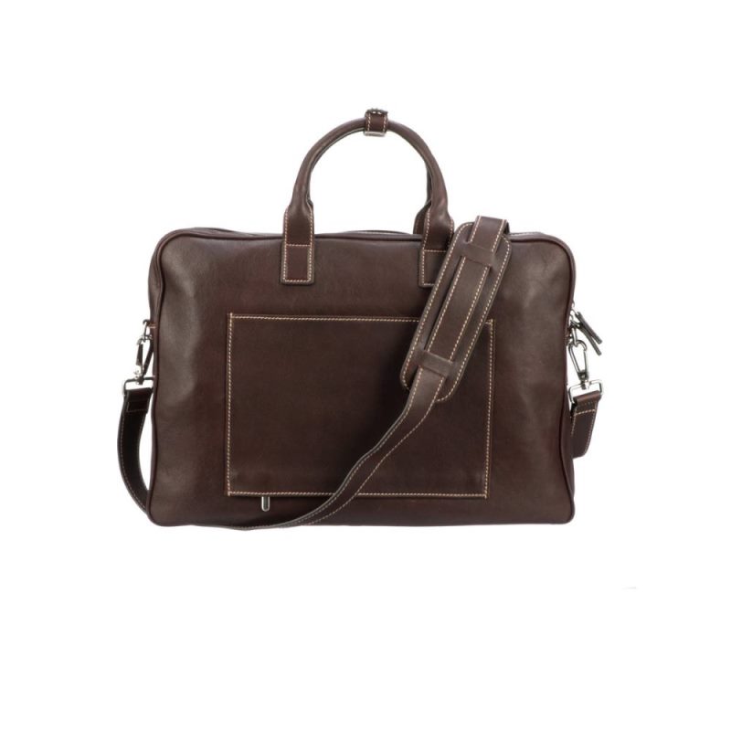•An exterior leather sleeve pocket that unzips from the bottom to allow you to slide the briefcase over the retractable handle of our rolling duffle.