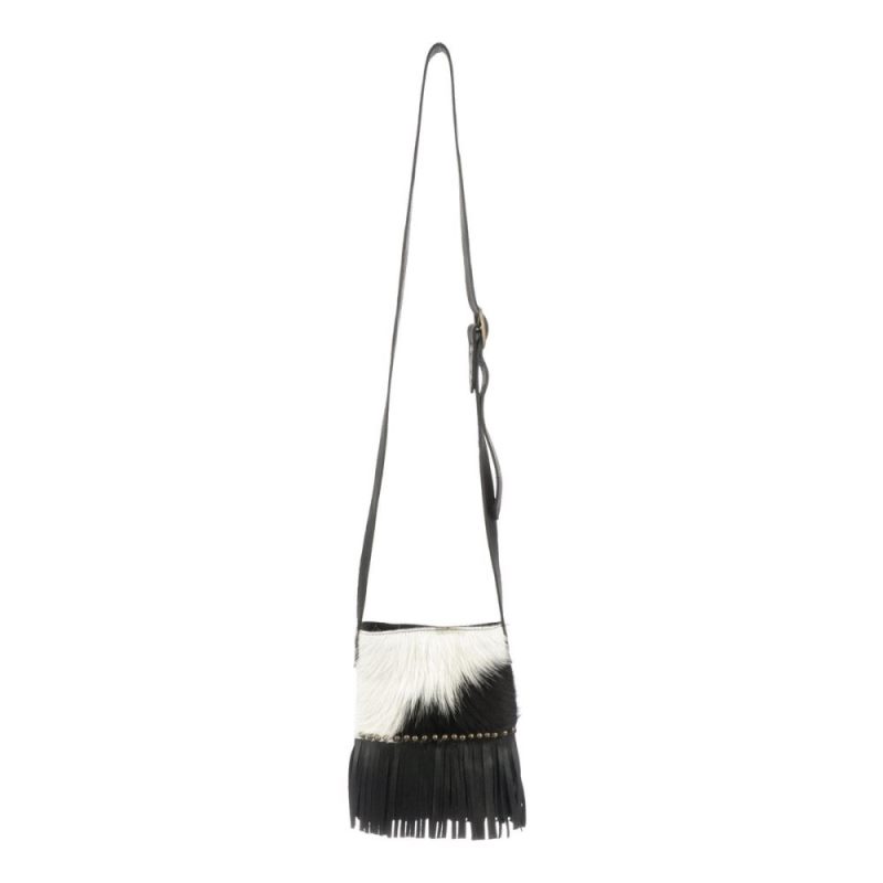 As cute as a calf, the Mini Cowprint Fringe Bag is handmade from hair-on cowhide and Italian leather. Brushed-nickel hardware and playful fringe elevate the little purse to style status. The adjustable strap lets you wear it as a shoulder bag or crossbody for an evening at the rodeo or a night out on the town.