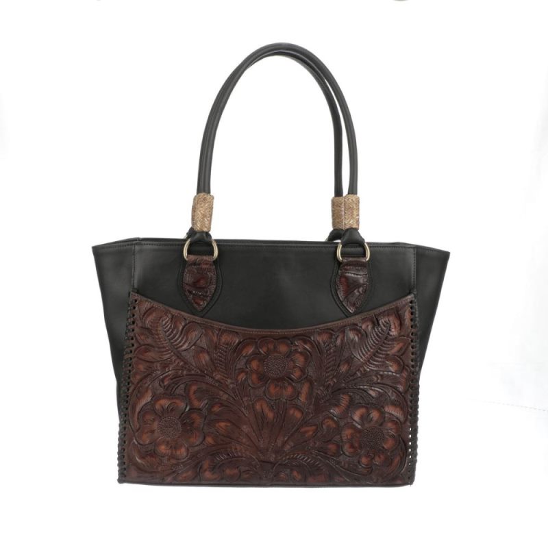 Hand-tooled leather is quintessentially Western, and the Tooled Tote Bag showcases the beauty of the art form in bison leather and cowhide. With a classic floral motif and horse-reign knots on the handles, this purse is big enough to carry a laptop and luxurious enough for a night out.