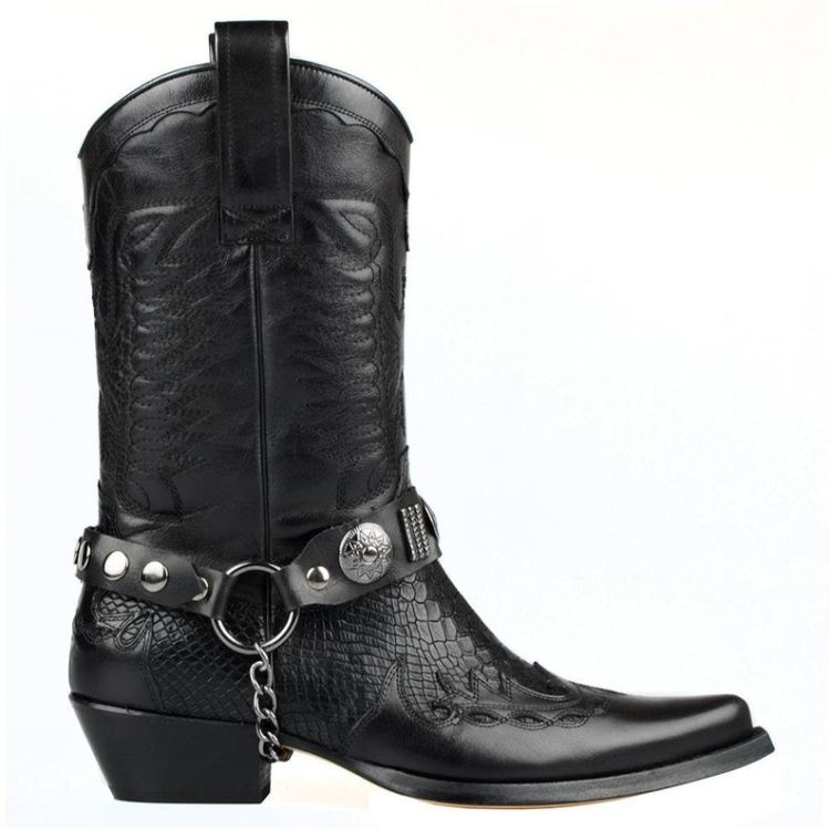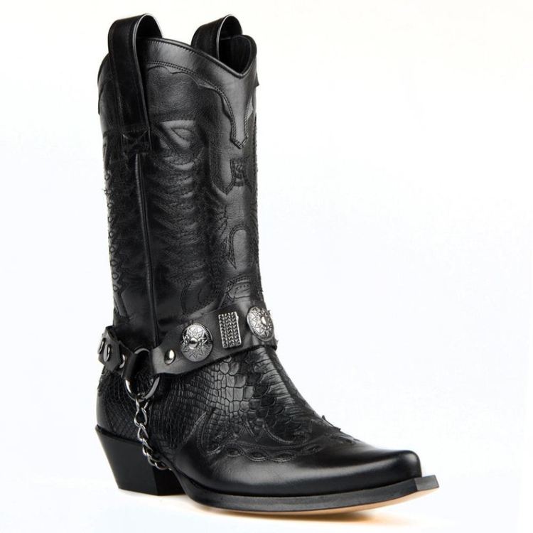 - Men's French Hand Tooled Black Boots Black Print Lizard | Canada
