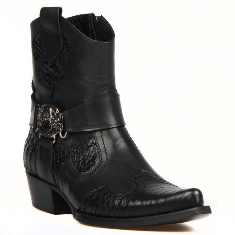 - Men's French Hand Tooled Black Boots Black Print Lizard | Canada