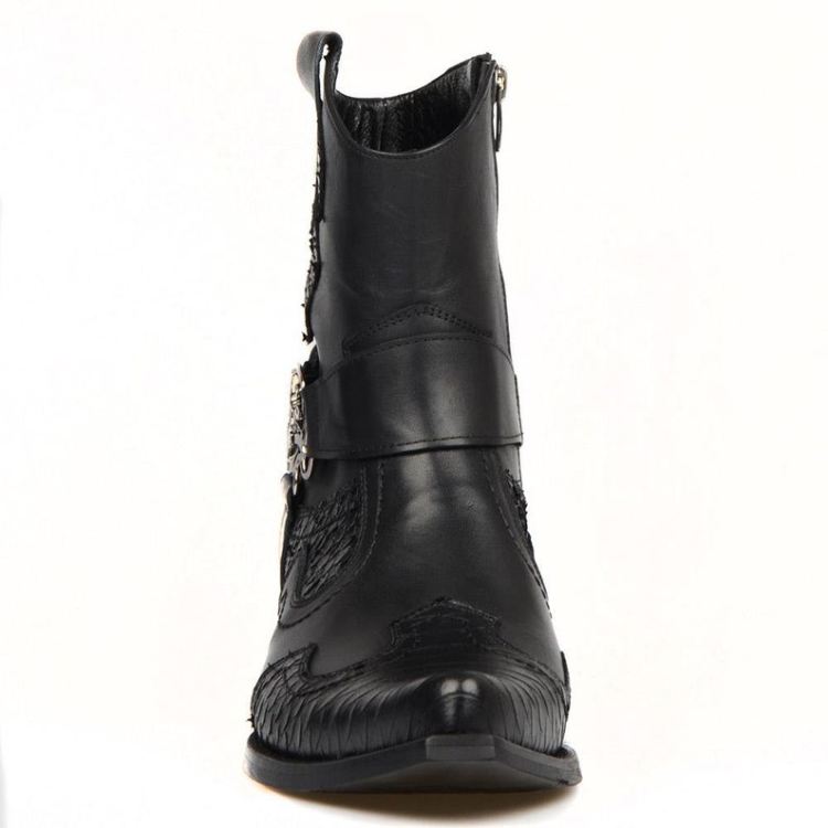 - Men's Footcourt Black Premium Genuine Leather Cowboy Boots Mid-calf | Canada