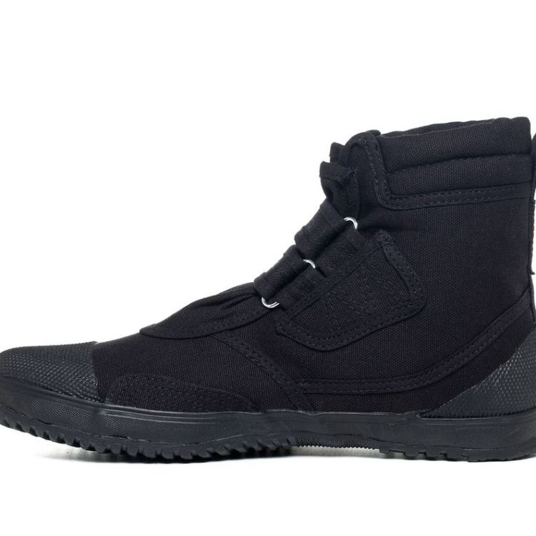 FUGU Shoes Ka-Ni Black Ankle High Boots Velcro Unisex (Japanese Footwear, Vegan Shoes)