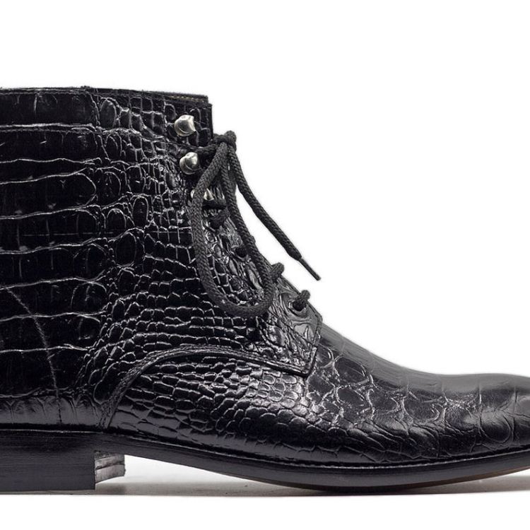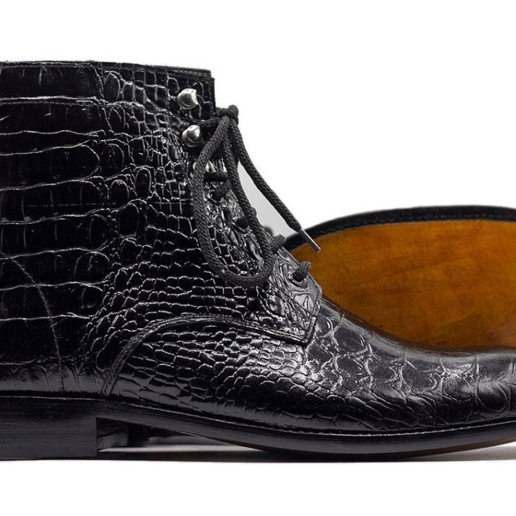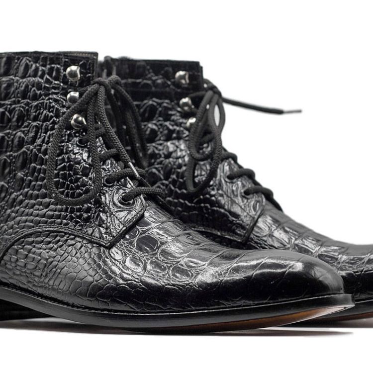 - Men's Handmade Black Alligator Texture Leather Bootss | Canada