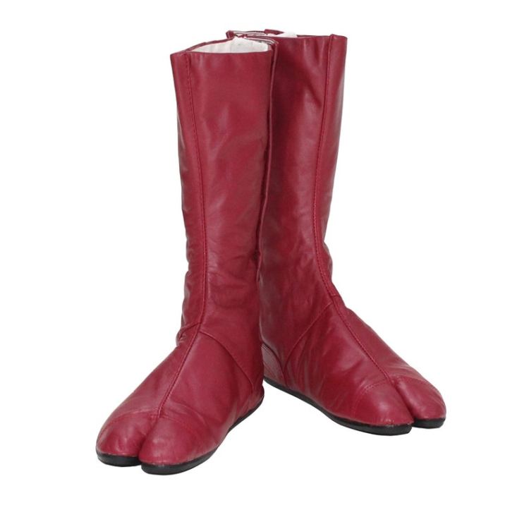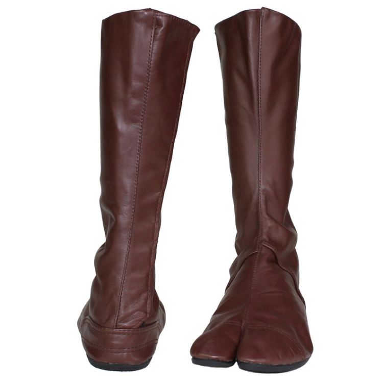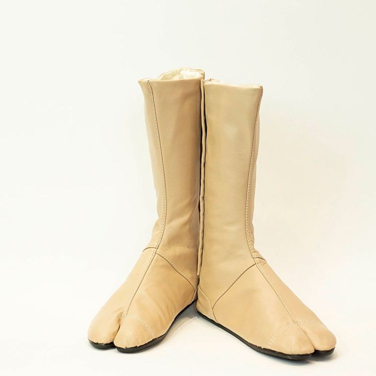 Genuine leather, cotton lining, stitched and glued rubber sole. Closure at the back of the ankle with 12 Kohaze hooks. Height: 31 cm.