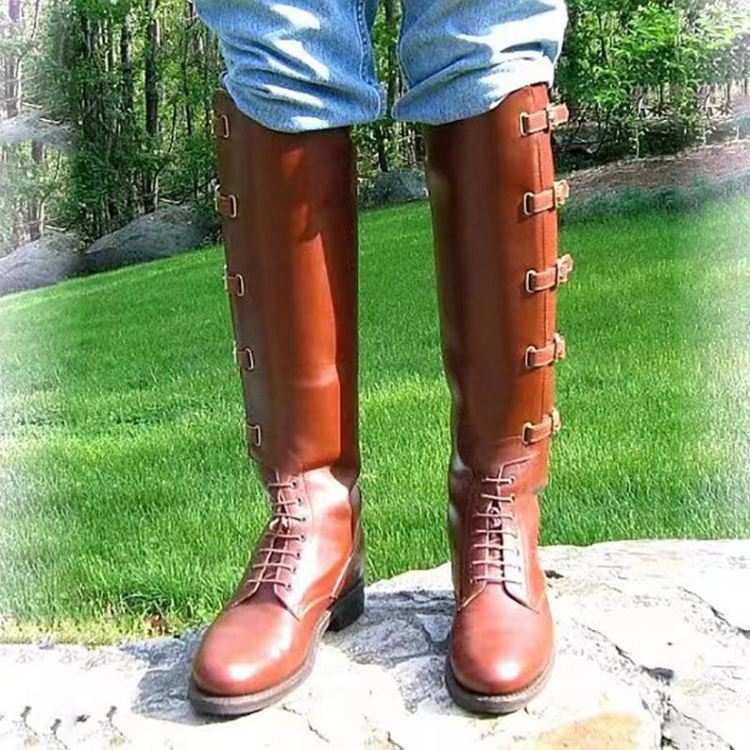 - Men's Dark Brown Handmade Leather High Boots With Ties Medieval SCA | Canada