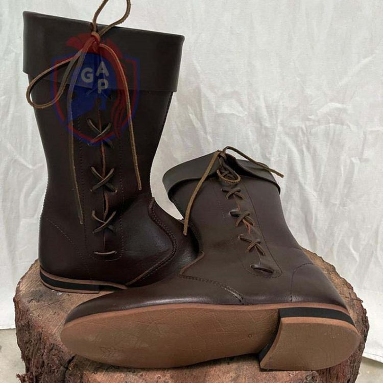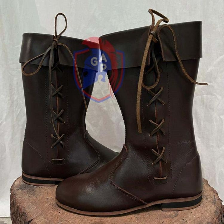 Medieval Leather Boots are available in Brown and Black color. Our lace up knee high boots for men runs true to