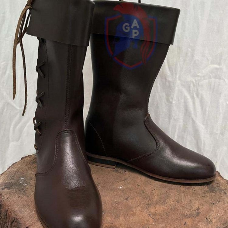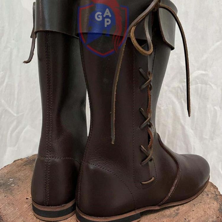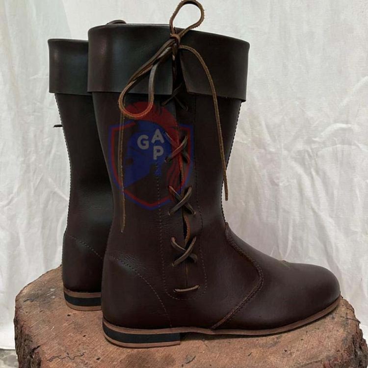 - Men's Dark Brown Handmade Leather High Boots With Ties Medieval SCA | Canada