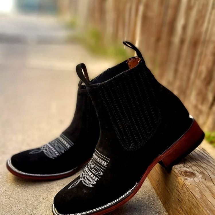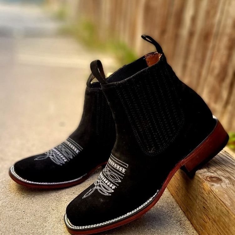 - Men's Suede Black Western LEATHER COWBOY Rodeo Square Toe Half | Canada