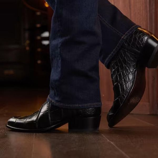 The Austin is our new flagship exotic cowboy boot, meticulously crafted in supple American Alligator belly. Years in development, this premium cowboy profile is hand-lasted with an angled heel, a clean calfskin shaft, and unique strip-style construction in lieu of traditional piping. Built for formal or casual, The Austin is a masterpiece for your collection. Beautifully crafted in Walnut, an alligator-exclusive color, and Midnight.