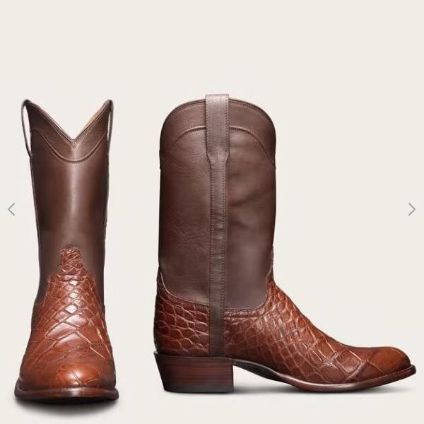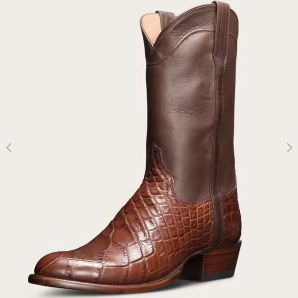 The Austin is our new flagship exotic cowboy boot, meticulously crafted in supple American Alligator belly. Years in development, this premium cowboy profile is hand-lasted with an angled heel, a clean calfskin shaft, and unique strip-style construction in lieu of traditional piping. Built for formal or casual, The Austin is a masterpiece for your collection. Beautifully crafted in Walnut, an alligator-exclusive color, and Midnight.
