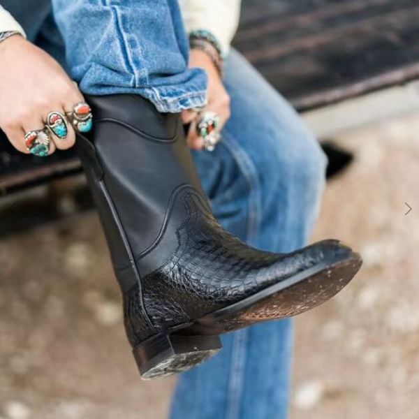 The Cole is an exotic roper boot, featuring caiman belly hand-lasted in our classic roper profile. A shorter heel and simple, elegant calfskin shaft showcase this supple exotic leather in a classic profile.