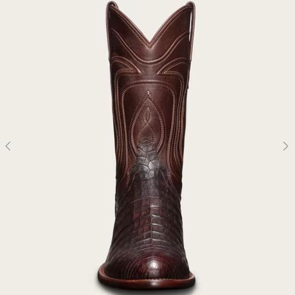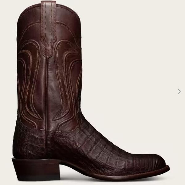 The Dillon is a striking exotic cowboy boot, featuring caiman belly hand-lasted in a timeless cowboy profile. An angled heel and signature Tecovas hand-corded calfskin shaft complete the elegant exotic profile.