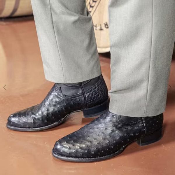 The Duke is an exotic roper boot, featuring full-quill ostrich leather hand-lasted in our classic roper profile. A shorter heel and simple, elegant calfskin shaft showcase the beautiful exotic leather in a classic profile.