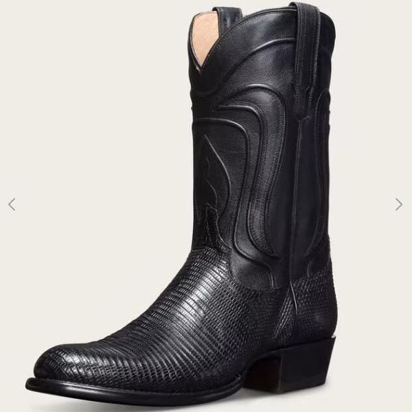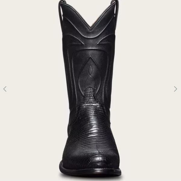 The Nolan is a versatile exotic cowboy boot, featuring genuine lizard leather hand-lasted in a timeless cowboy profile. An angled heel and signature Tecovas hand-corded calfskin shaft complete the elegant exotic profile.