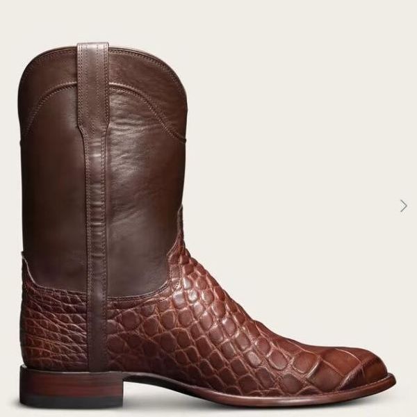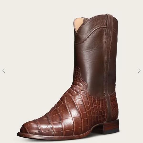 The Townes is our new flagship exotic roper boot, meticulously crafted in supple American Alligator belly. Years in development, this premium roper profile is hand-lasted with a roper heel, a clean calfskin shaft, and unique strip-style construction in lieu of traditional piping. Built for formal or casual, The Townes is a masterpiece for your collection. Beautifully crafted in Walnut, an alligator-exclusive color, and Midnight.