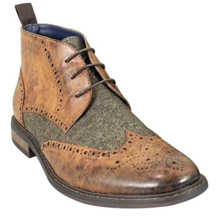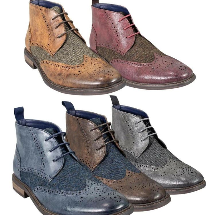 - Men's Handmade Leather Shoes Burgundy Leather and Tweed Ankle High | Canada