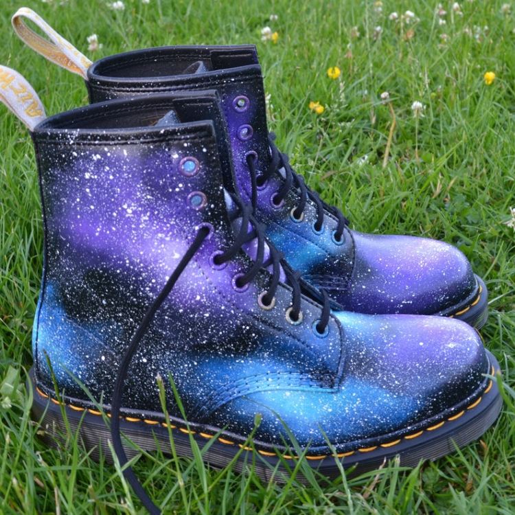 Totally unique vegan galaxy Dr. Martens, hand painted in my Celestial Skies design