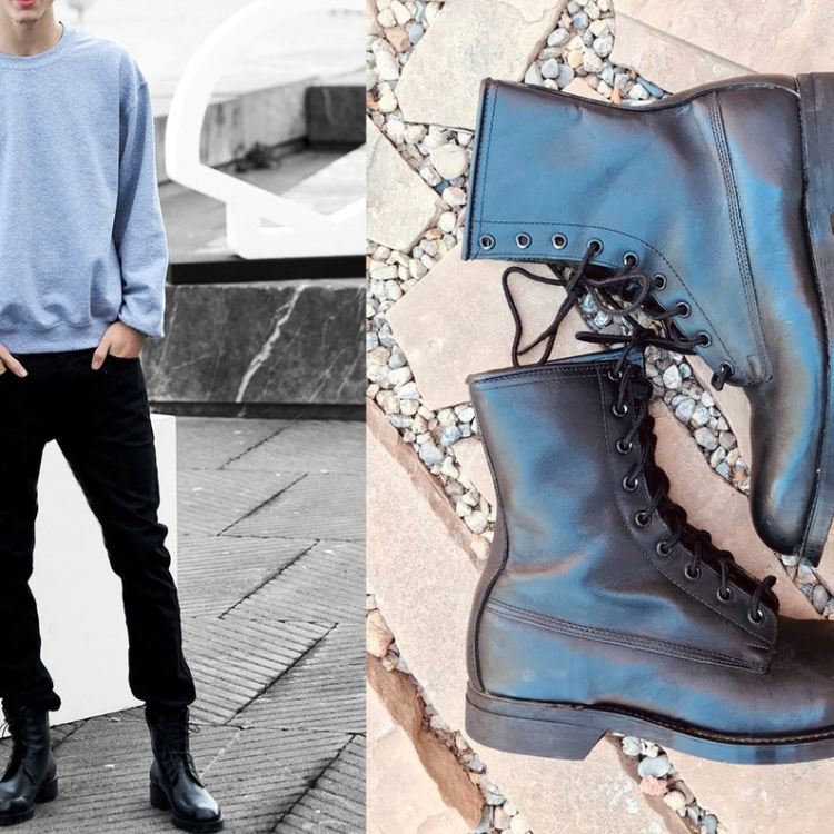 - Men's R O Search Vintage Military Combat Boot Black Leather | Canada