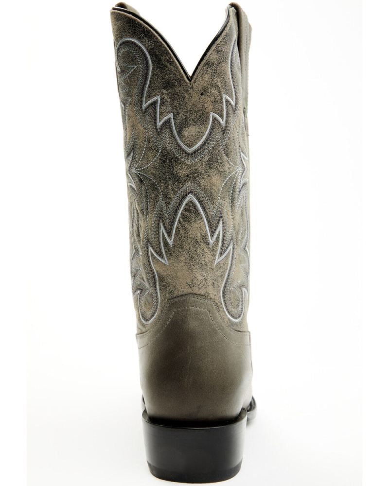 - Solid gray design with western stitching
