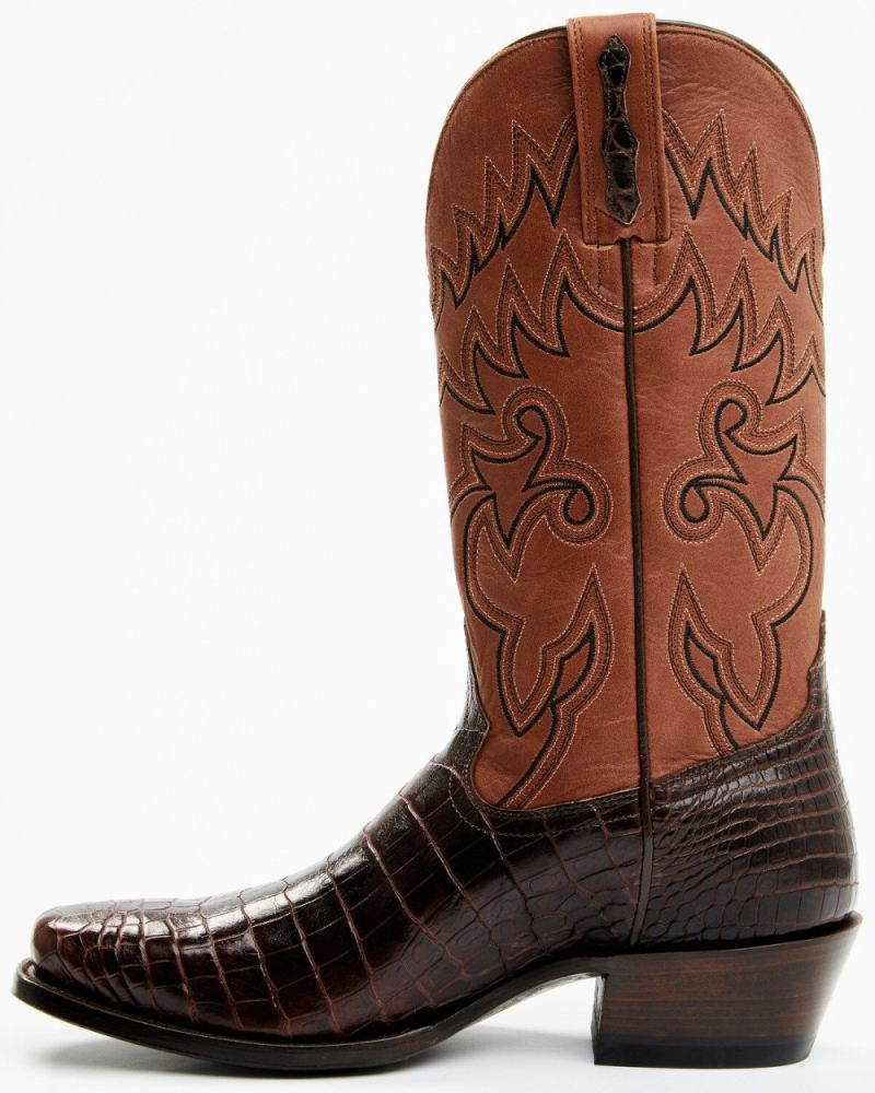 - Chocolate brown alligator on vamp with brown shaft with western embroidery