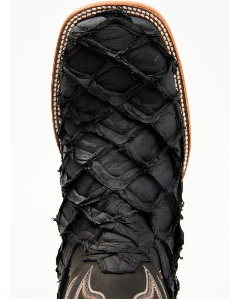 - Exotic Pirarucu vamp and black shaft with western stitching