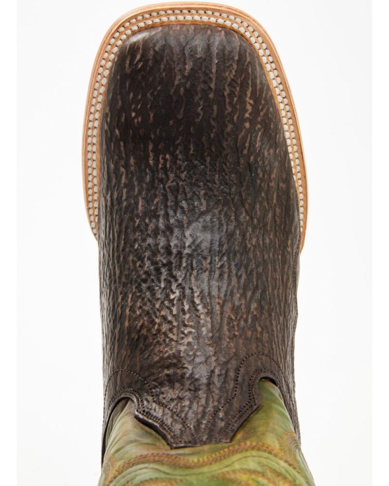 - Exotic shark vamp and green shaft with yellow and brown western stitching