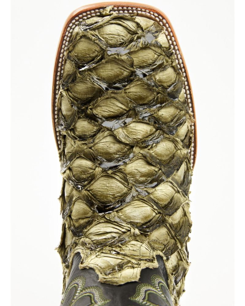 - Exotic Pirarucu vamp and green shaft with western stitching
