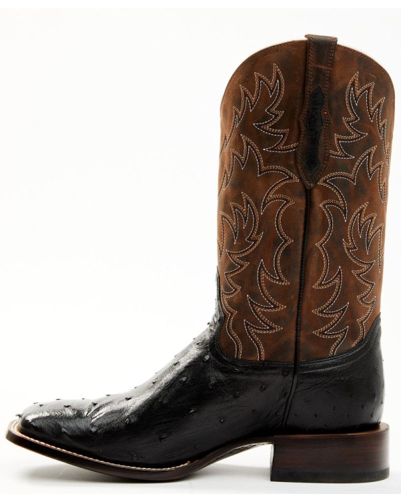 - Leather shaft with full-quill ostrich material on foot and vamp