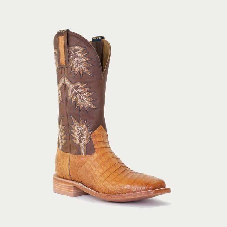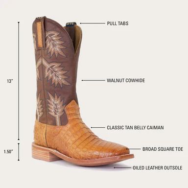 We've blended our founder's signature "Olathe" stitch design with the rich texture of premium caiman crocodile and our popular broad square toe to craft a boot that commands attention and stands apart.