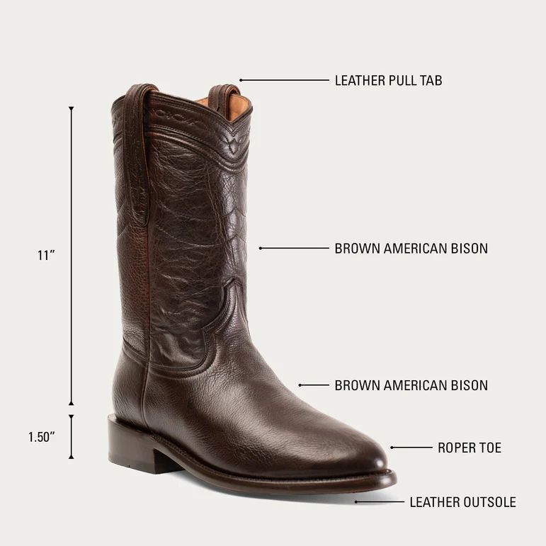 Regular cleaning and conditioning will help American bison leather boots last longer. Be sure to let boots dry after exposure to wet and muddy conditions. Use a horsehair boot brush or a clean damp cloth to remove debris before cleaning and conditioning the leather. We recommend Bickmore's Bick 4 Leather Conditioner.