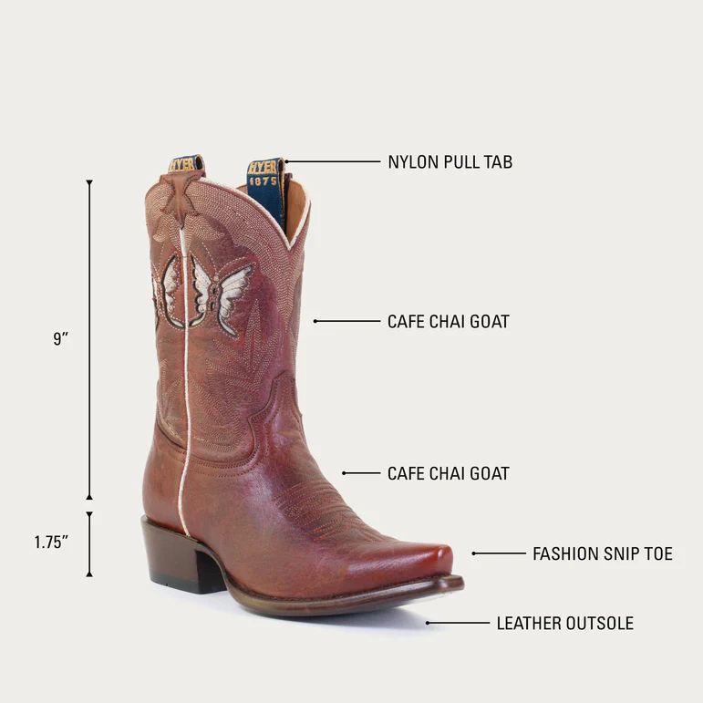 So legendary we brought it back from the archives, the Nanette is our Nana's favorite design. Delicate butterfly inlays balanced with traditional craftsmanship - dressed up or down, this boot's ready for some fun.