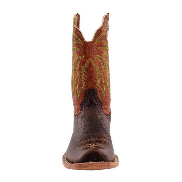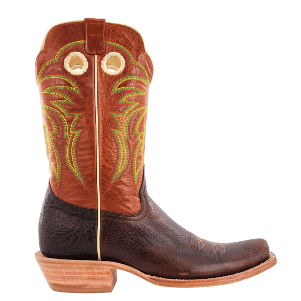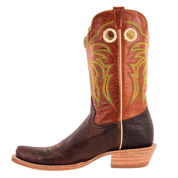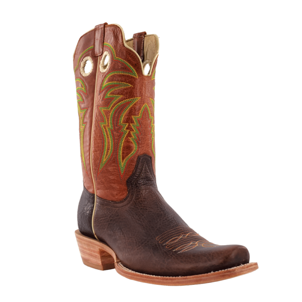 R. Watson presents these cowhide western boots. These boots have a 10 row stitch pattern, R. Watson comfort system, all leather stacked heel, counters, solid steel shank, and 10 iron outsole. 11" total in height.