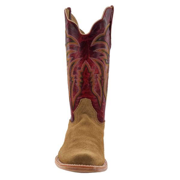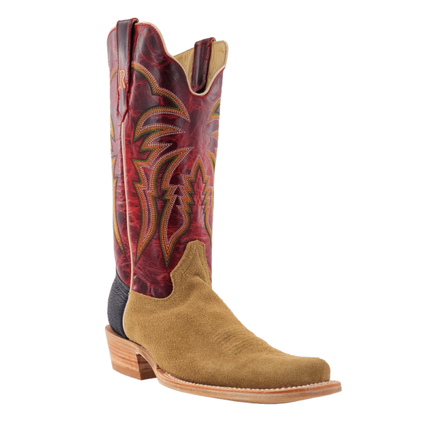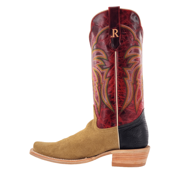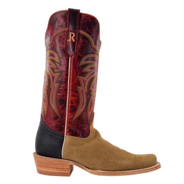 R. Watson presents these heavy roughout and cowhide western boots. These boots have a 10 row stitch pattern, R. Watson comfort system, all leather stacked heel, counters, solid steel shank, and 10 iron outsole. 13" total in height.