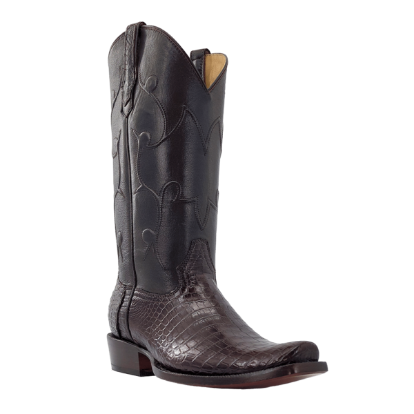 - R Watson New Arrivals Men's Nile Crocodile Narrow Square 13"- CHOCOLATE