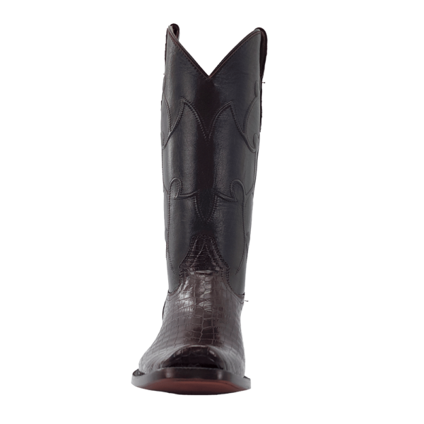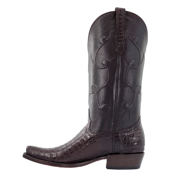 R. Watson presents these Nile crocodile and goat exotic western boots. These boots have a corded stitch pattern, R. Watson comfort system, all leather stacked heel, counters, solid steel shank, and 10 iron outsole. 13" total in height.