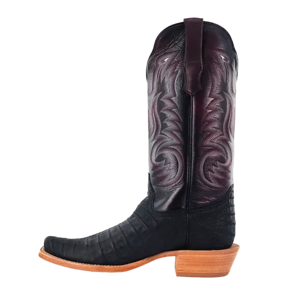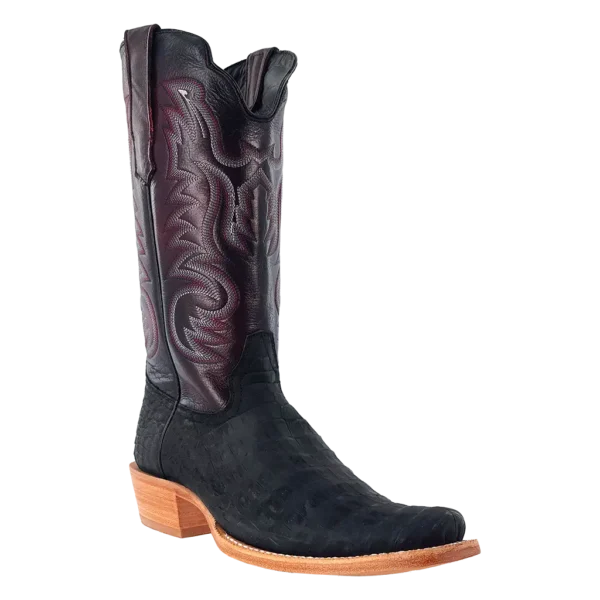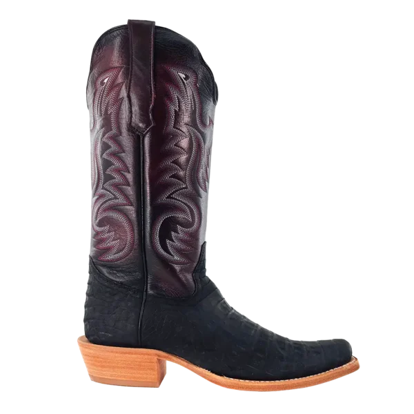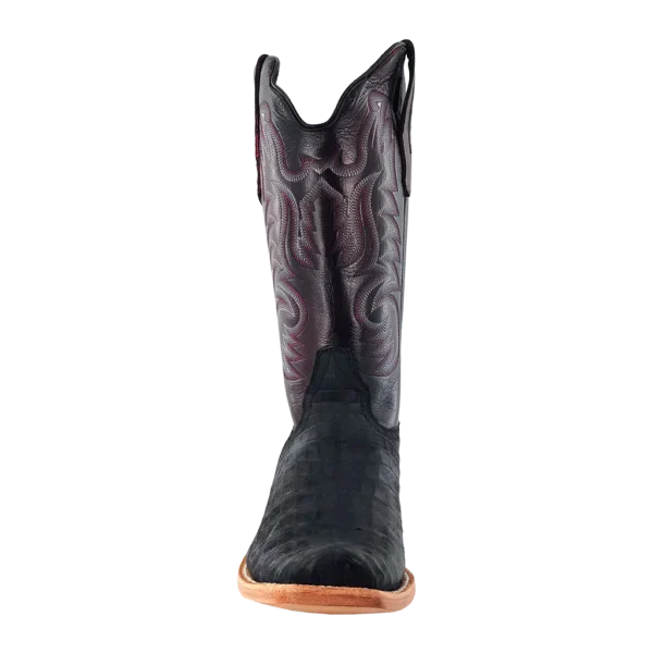R. Watson presents these nubuck caiman brush off exotic western boots. These boots have a corded stitch pattern, R. Watson comfort system, all leather stacked heel, counters, solid steel shank, and 10 iron outsole. 13" total in height.