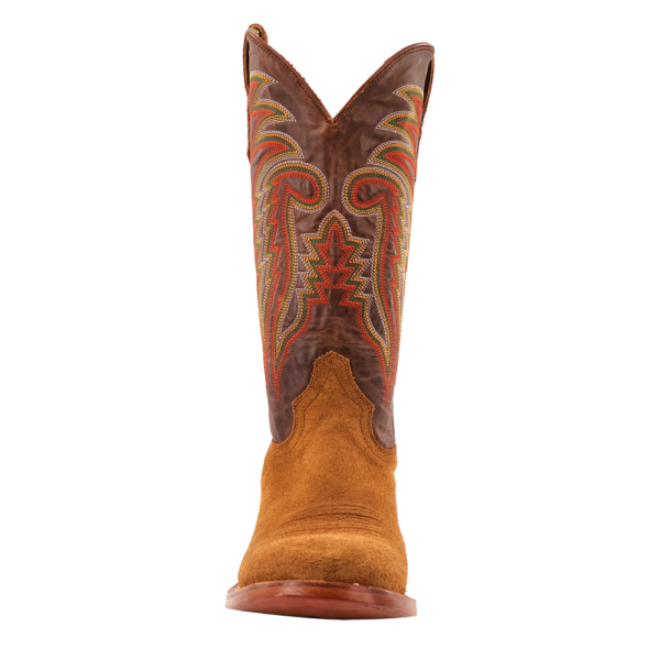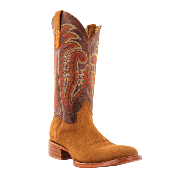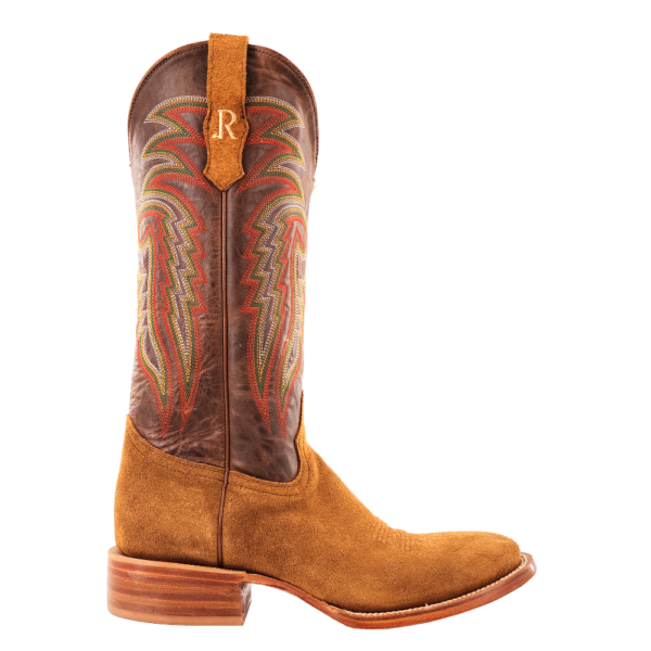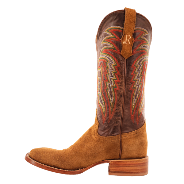 R. Watson presents these roughout and cowhide western boots. These boots have a 10 row stitch pattern, R. Watson comfort system, all leather stacked heel, counters, solid steel shank, and 10 iron outsole. 13" total in height.
