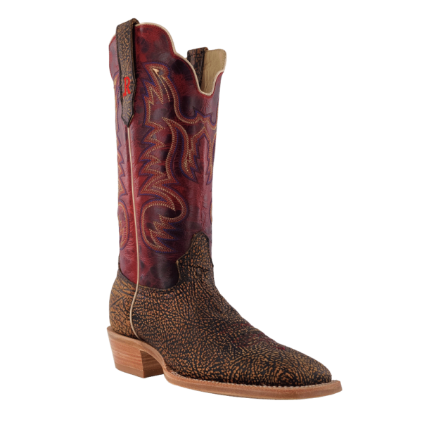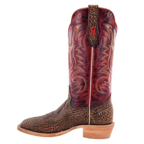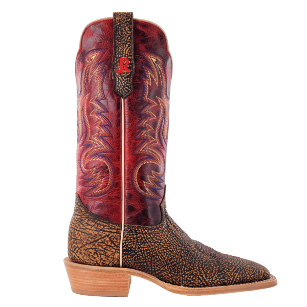 R. Watson presents these shrunken shoulder and cowhide exotic western boots. These boots have a 10 row stitch pattern, R. Watson comfort system, all leather stacked heel, counters, solid steel shank, and 10 iron outsole. 13" total in height.