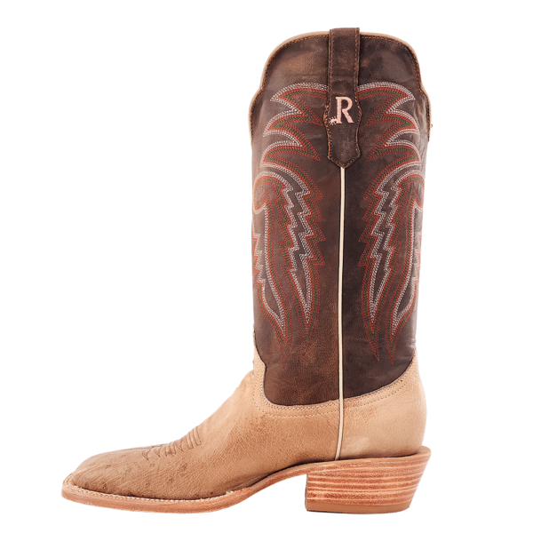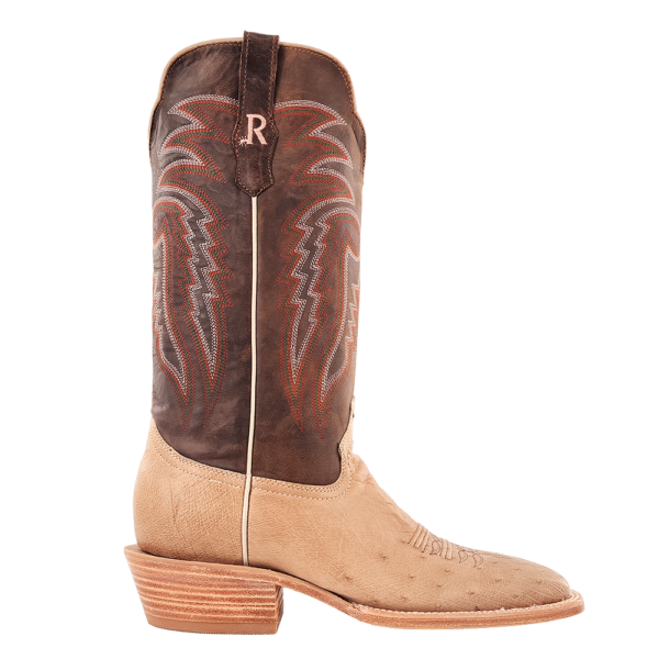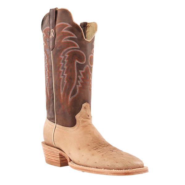 R. Watson presents these smooth ostrich and cowhide exotic western boots. These boots have a 10 row stitch pattern, R. Watson comfort system, all leather stacked heel, counters, solid steel shank, and 10 iron outsole. 13" total in height.
