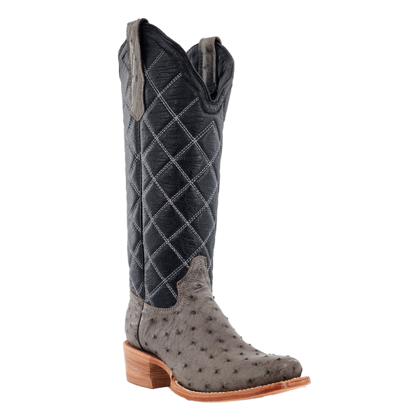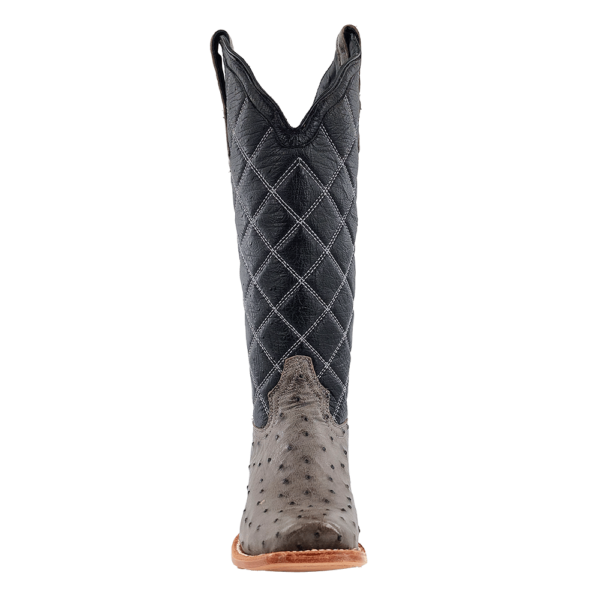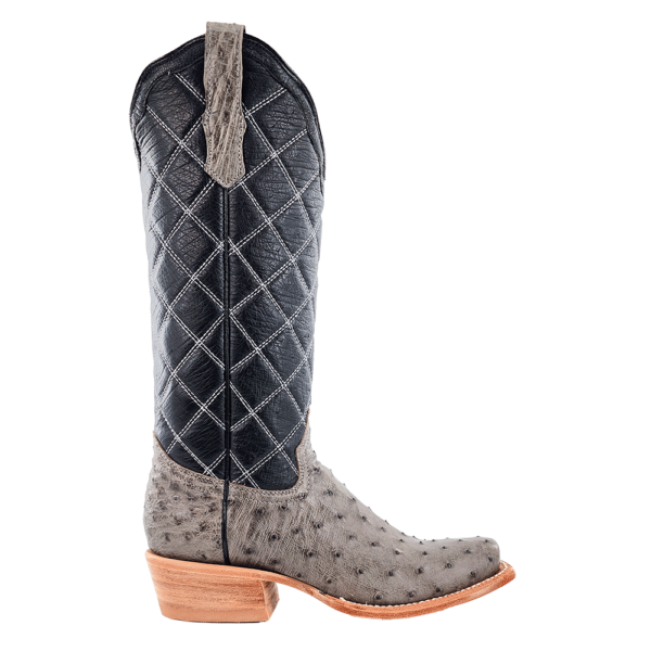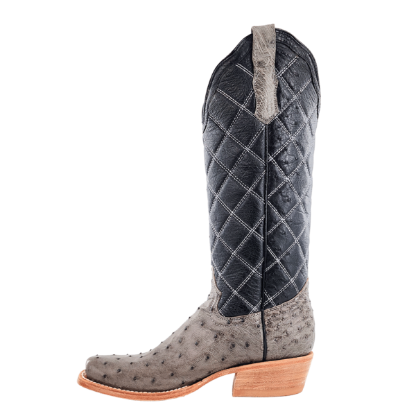 R. Watson presents these full quill ostrich and smooth ostrich upper. These boots have a quilted upper, R. Watson comfort system, all leather stacked heel, counters, solid steel shank, and 10 iron outsole. 14" total in height.
